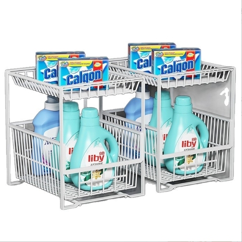 रसोई और बाथरूम स्टेकयोग्य संगठन के लिए डिवाइडर्स पुल-आउट कैबिनेट आयोजक के साथ 2-टियर बाथरूम आयोजक